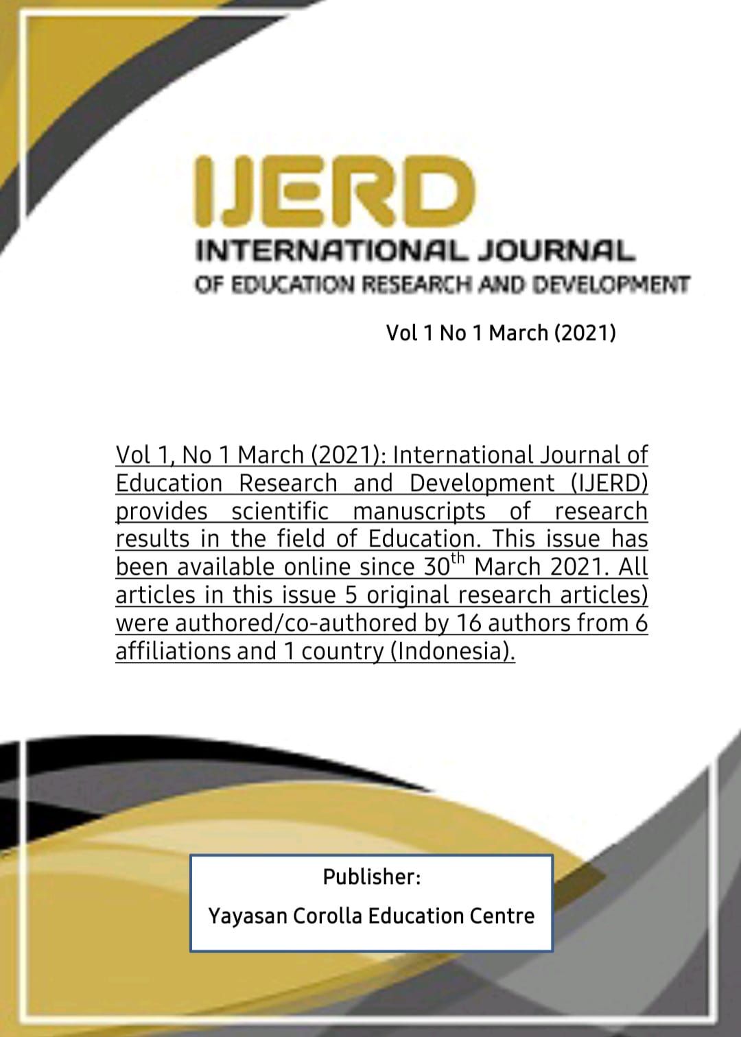 ##issue.vol## 1 ##issue.no## 1 (2021)Vol 1, No 1 March (2021): International Journal of Education Research and Development (IJERD) provides scientific manuscripts of research results in the field of Education. This issue has been available online since 30th March 2021. All articles in this issue 5 original research articles) were authored/co-authored by 16 authors from 6 affiliations and 1 country (Indonesia).