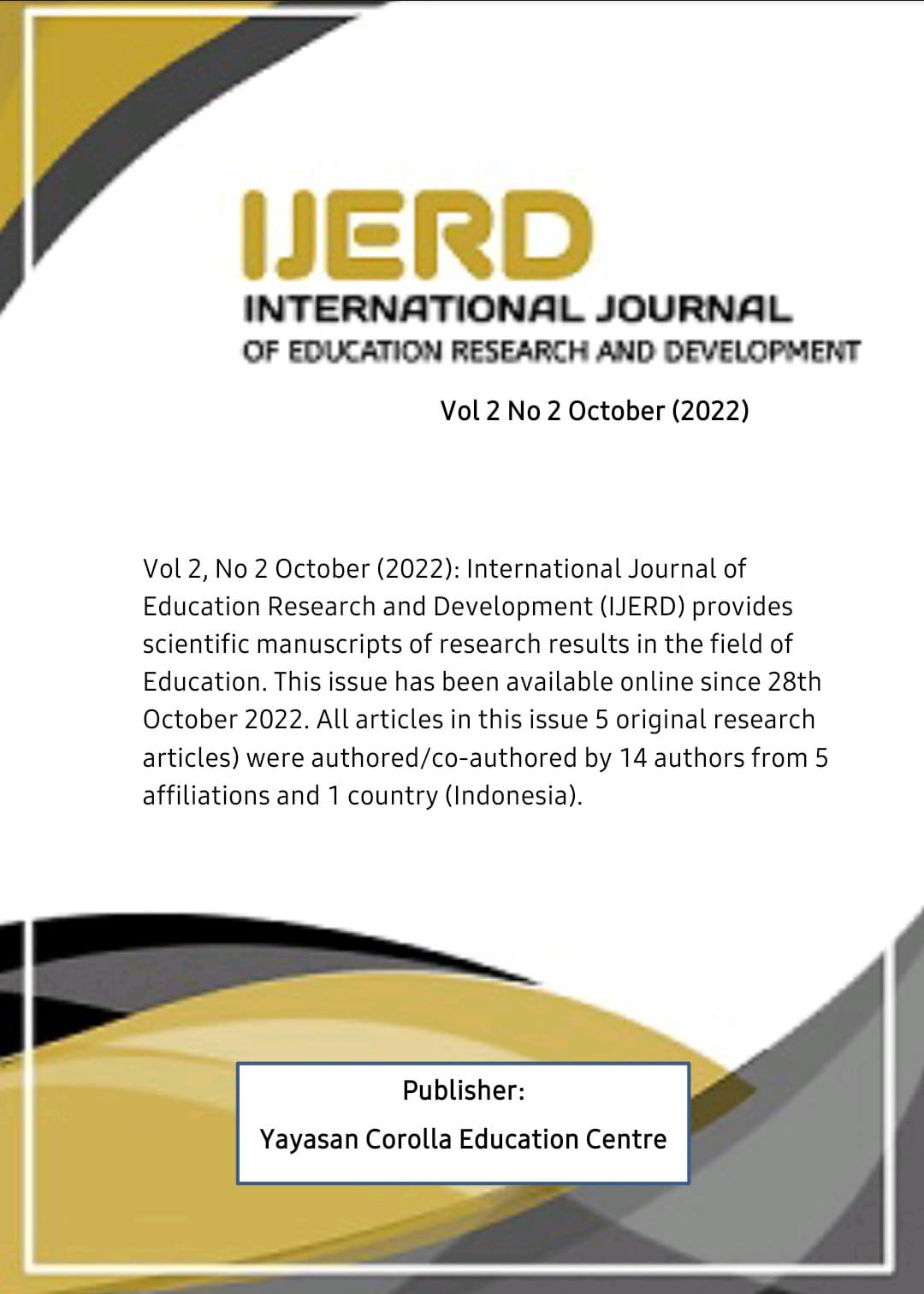 ##issue.vol## 2 ##issue.no## 2 (2022)Vol 2, No 2 October (2022): International Journal of Education Research and Development (IJERD) provides scientific manuscripts of research results in the field of Education. This issue has been available online since 28th October 2022. All articles in this issue 5 original research articles) were authored/co-authored by 14 authors from 5 affiliations and 1 country (Indonesia).